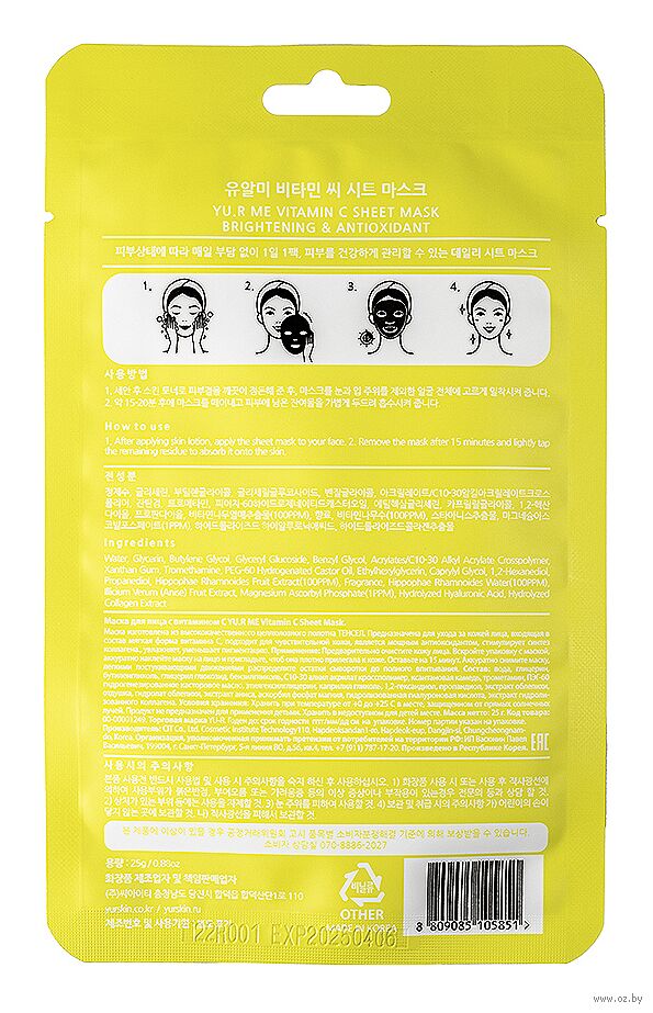 Предварительно очистите кожу лица. Вскройте упаковку с маской, аккуратно наклейте маску на лицо и пригладьте, чтоб она плотно прилегала к коже. Оставьте на 15 минут. Аккуратно снимите маску, легкими постукивающими движениями распределите остатки сыворотки до полного впитывания.Состав