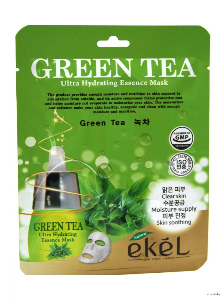Тканевая маска с экстрактом зеленого чая обладает антиоксидантным действием, активирует клеточный обмен, защищает кожные покровы от свободных радикалов, восстанавливает повреждённые клетки и повышает упругость кожи. Полифенолы зеленого чая оказывают также противовоспалительное и антибактериальное действие, способствуют проникновению биологически активных веществ в кожу. Танины придают коже упругость. Маска успокаивает кожу, улучшает цвет лица и придает ей здоровое сияние.