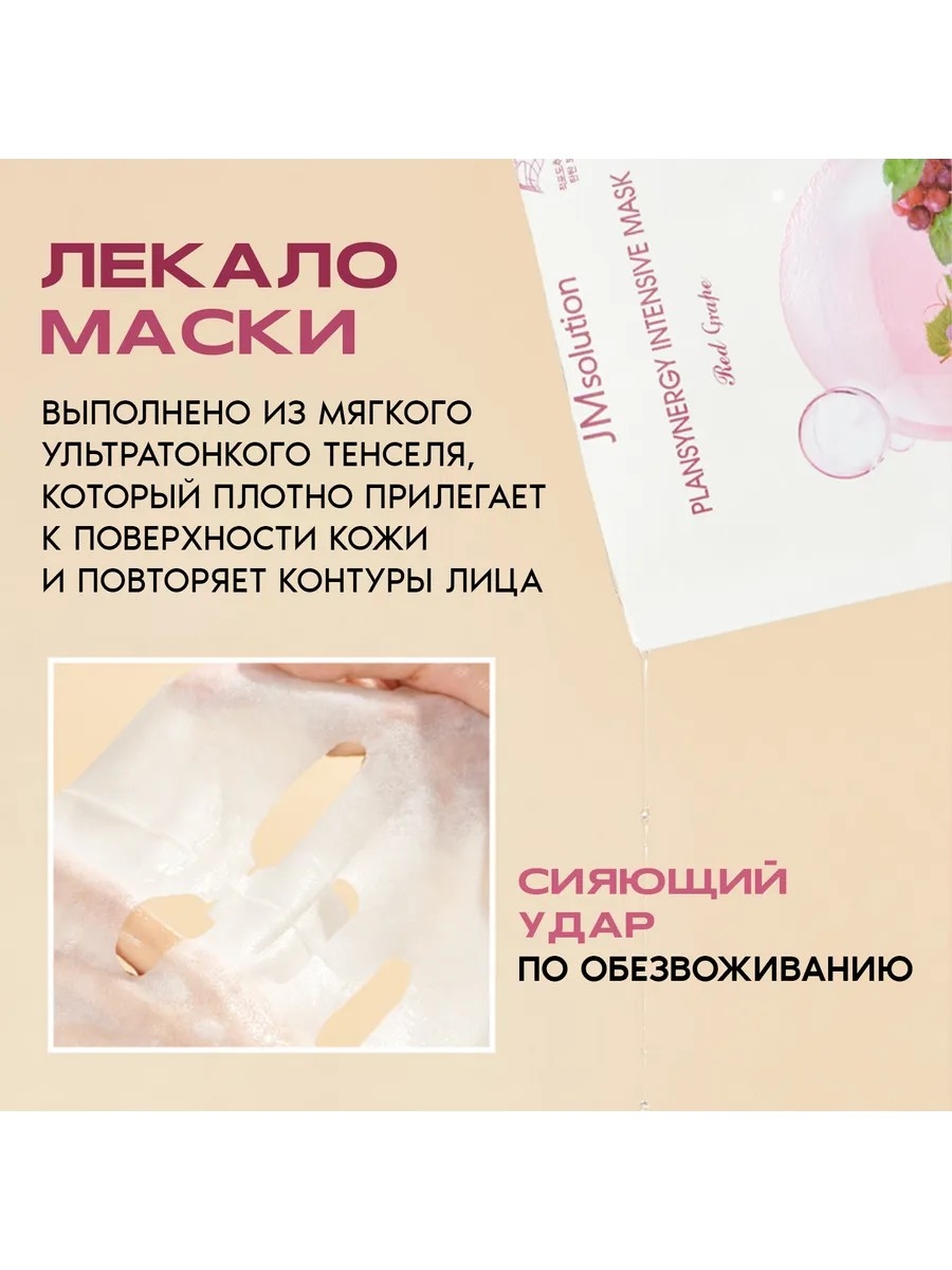 Укрепляющая тканевая маска с красным виноградом JMsolution "Plansynergy Intensive Mask Red Grape" отвечает за повышение упругости и эластичности тканей, замедляет процессы старения. Обладает высокой антиоксидантной активностью, улучшает цвет лица и тонизирует.