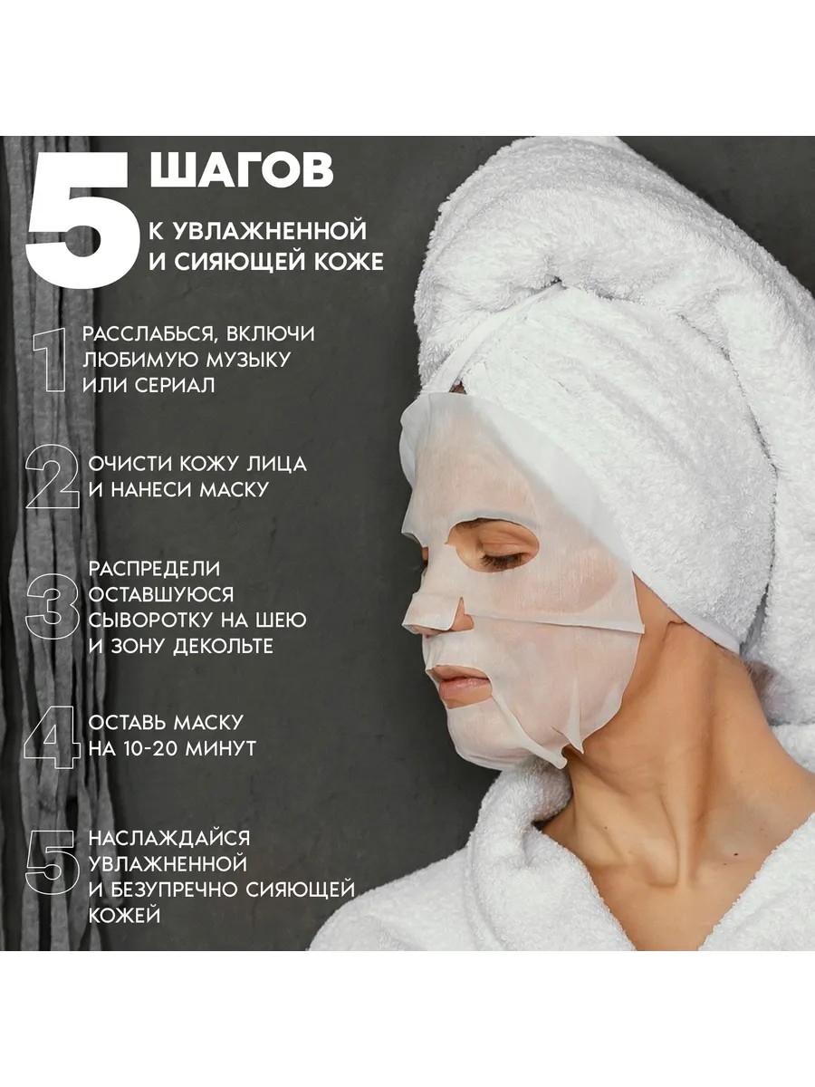 Активно напитывает и устраняет сухость, поддерживает оптимальный уровень увлажнения и оздоравливает микробиоту кожи. Способствует удержанию влаги в эпидермисе и способствует разглаживанию кожных заломов. Лекало маски выполнено из мягкого ультратонкого тенселя, плотно прилегает к поверхности кожи и повторяет контуры лица.