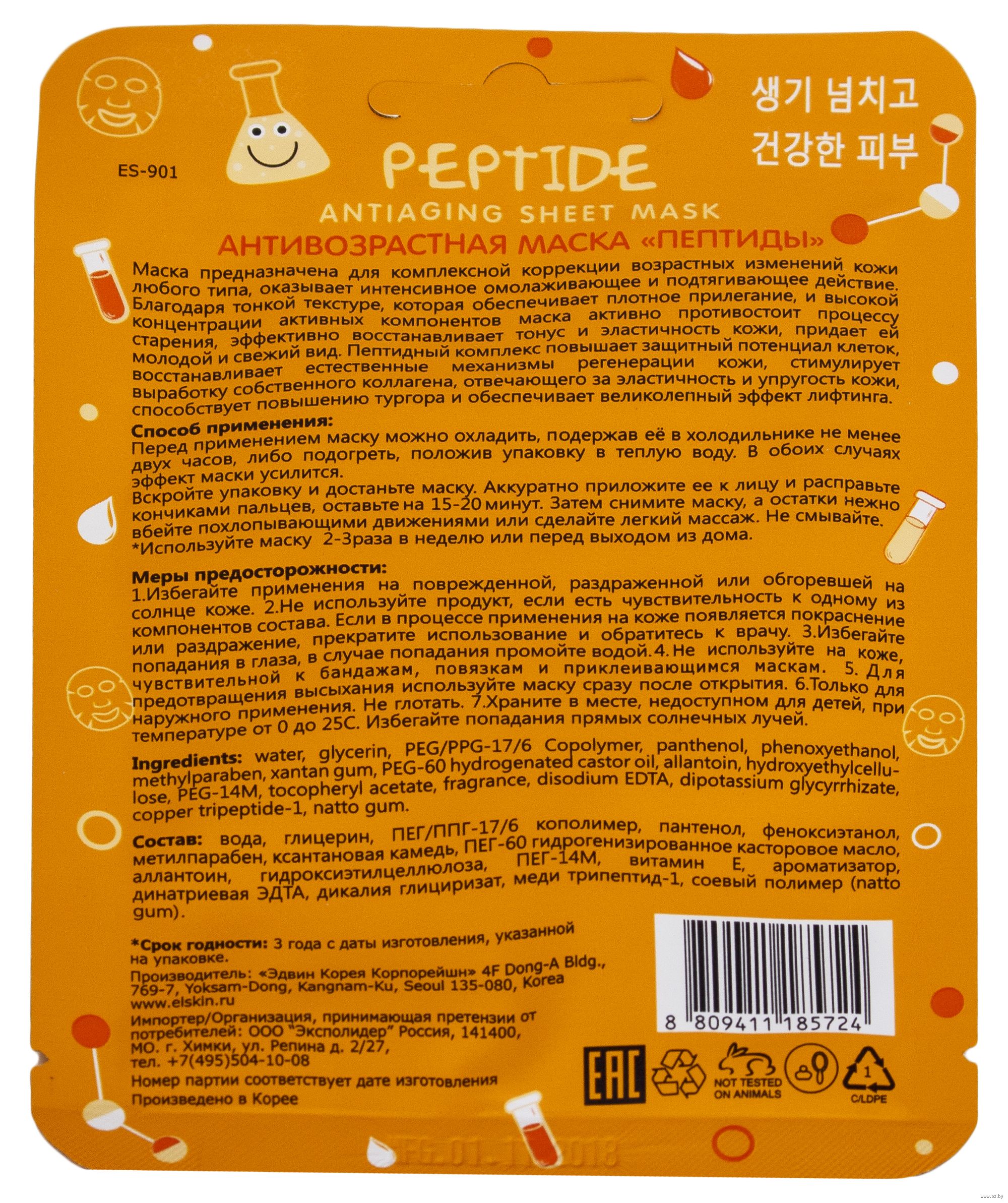 Тканевая маска для лица "Антивозрастная. Пептиды" (15 г)