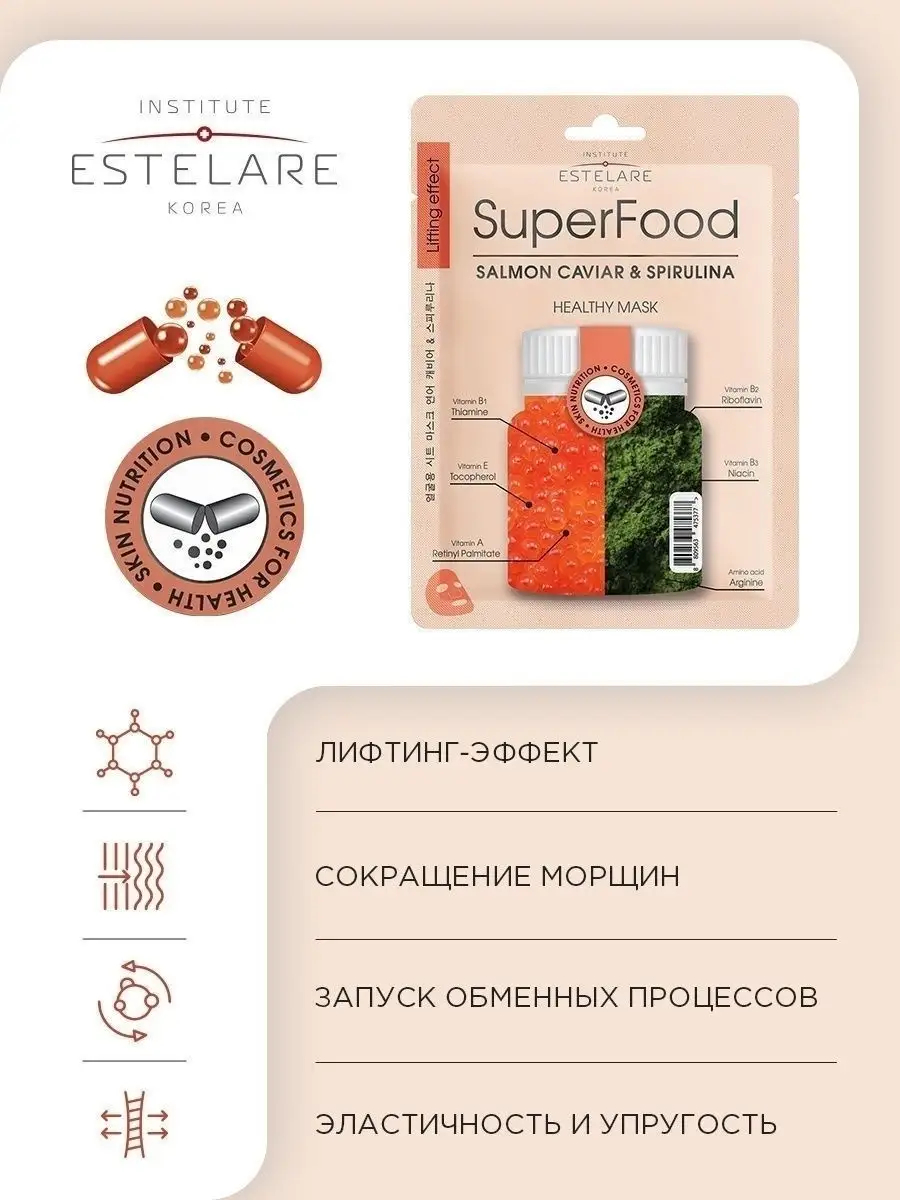 Серия тканевых масок на основе суперфудов разработана для поддержания красоты и здоровья кожи лица.