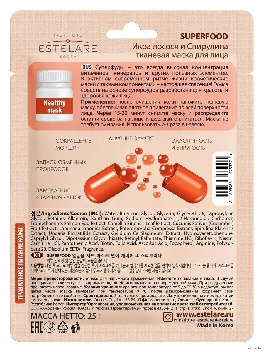 Тканевая маска для лица "Икра лосося и спирулина" (25 г)