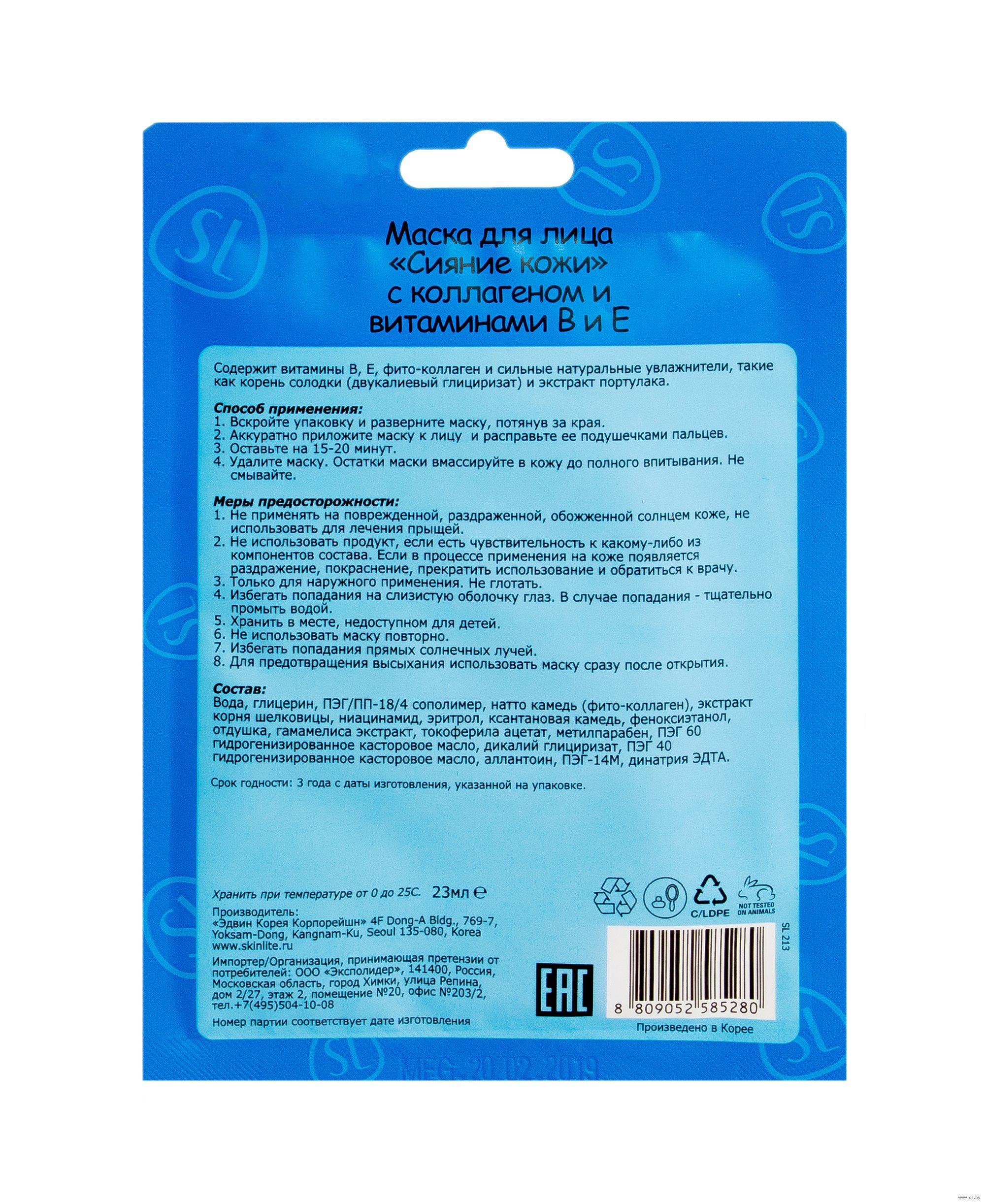 Содержит витамины В, Е, фито-коллаген и сильные натуральные увлажнители, такие как корень солодки и экстракт портулака. Эта специальная формула помогает сохранить красивый цвет лица, осветляет пигментные пятна, после применения данной маски кожа становится мягкой, гладкой, выглядит молодой и свежей.