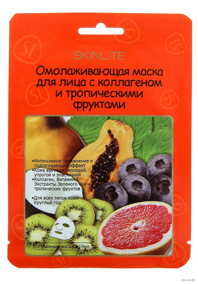 Тканевая маска для лица "Омолаживающая. С коллагеном и тропическими фруктами" (19 мл)