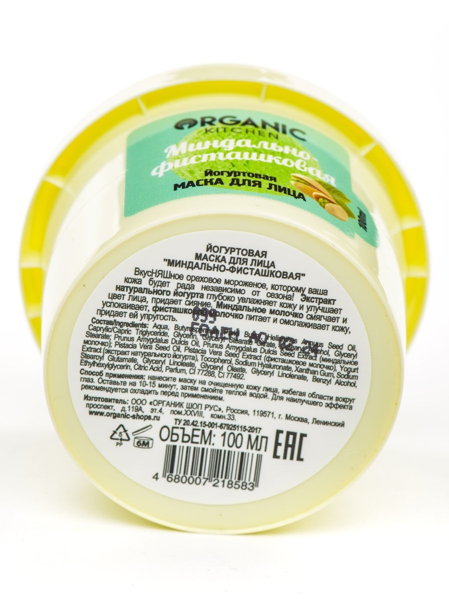 Aqua, butyrospermum parkii butter, helianthus annuus seed oil, caprylic/capric triglyceride, glycerin, glyceryl stea- rate citrate, cetearyl alcohol, glyceryl stearate; prunus amygdalus dul- cis oil, prunus amygdalus dulcis seed extract (миндальное молочко), pistacia vera seed oil; pistacia vera seed extract (фисташковое молочко), yogurt extract (экстракт натурального йогурта), tocoph- erol, sodium hyaluronate, xanthan gum, sodium stearoyl glutamate, glyceryl linoleate, glyceryl oleate, glyceryl linolenate, benzyl alcohol, ethylhexylglycerin, citric acid, parfum, ci 77288, ci 77492, ci 77891.