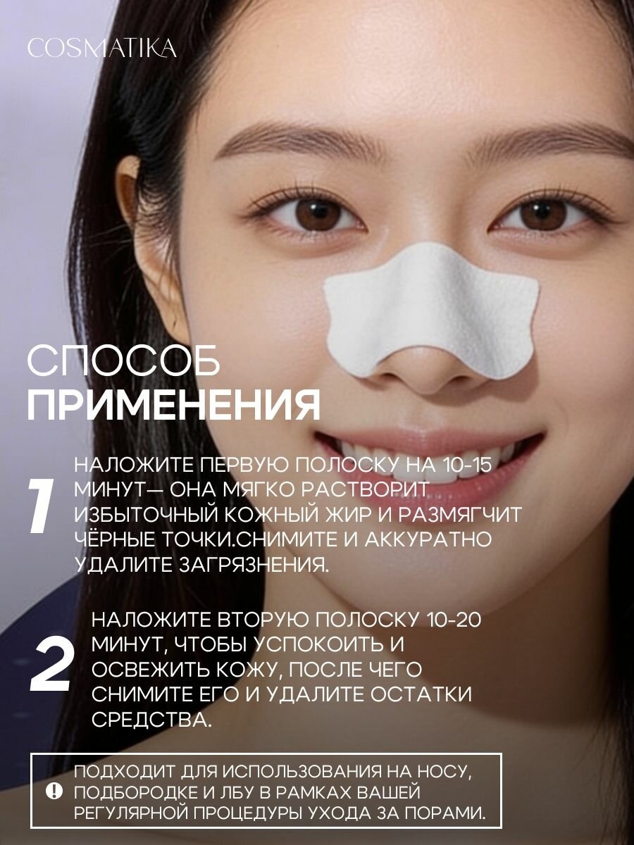 Шаг 1: нанесите 1-й лист на нос, чтобы аккуратно растопить концентрированное масло и черные точки.Состав