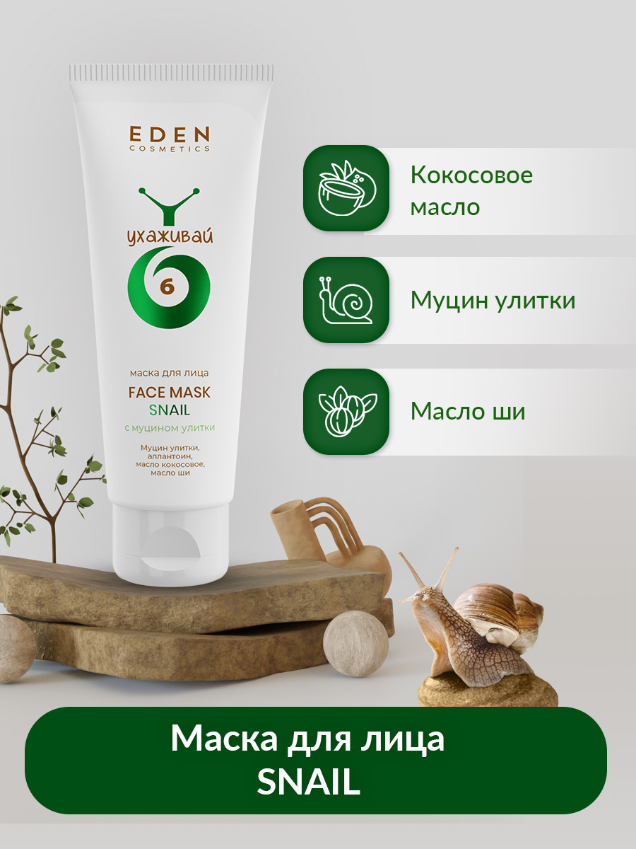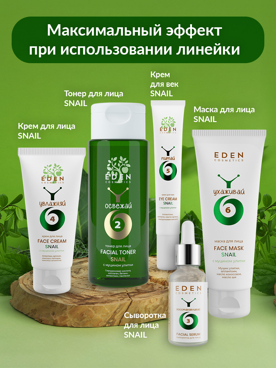 Муцин улитки глубоко увлажняет и разглаживает неровности кожи.