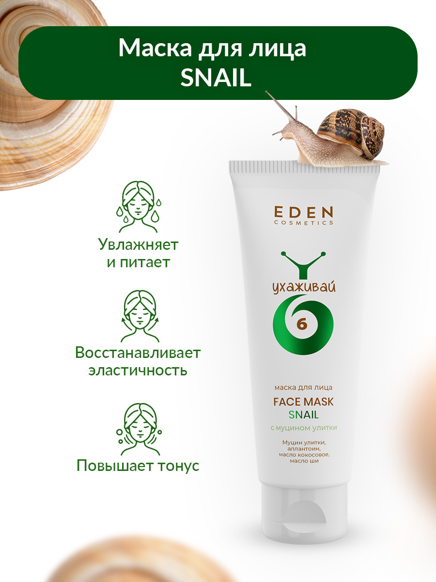 Маска для лица с муцином улитки оказывает восстанавливающее и питательное действие на кожу.
