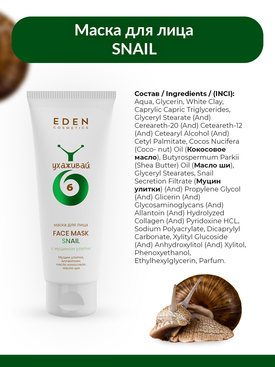 Aqua, Glycerin, White Clay, Caprylic Capric Triglycerides, Glyceryl Stearate (And) Cereareth-20 (And) Ceteareth-12 (And) Cetearyl Alcohol (And) Cetyl Palmitate, Cocos Nucifera (Coco- nut) Oil (Кокосовое масло), Butyrospermum Parkii (Shea Butter) Oil (Масло ши), Glyceryl Stearates, Snail Secretion Filtrate (Муцин улитки) (And) Propylene Glycol (And) Glicerin (And) Glycosaminoglycans (And) Allantoin (And) Hydrolyzed Collagen (And) Pyridoxine HCL, Sodium Polyacrylate, Dicaprylyl Carbonate, Xylityl Glucoside (And) Anhydroxylitol (And) Xylitol, Phenoxyethanol, Ethylhexylglycerin, Parfum.Мы используем файлы cookie для обеспечения удобства работы с сайтом и его контакта с пользователем.