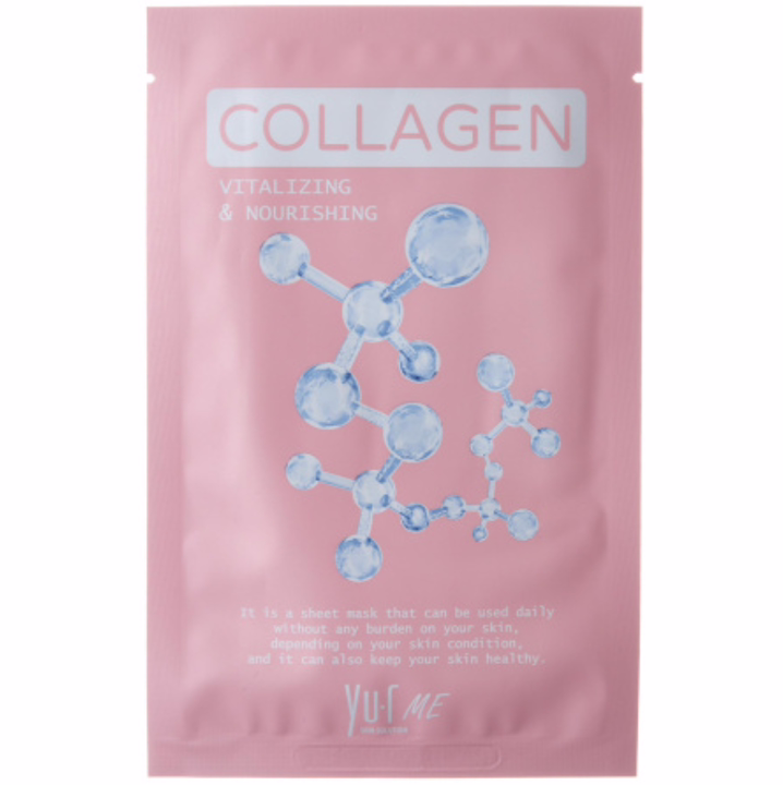 Омолаживающая и стимулирующая маска для лица с коллагеном YU.R ME Collagen Sheet Mask. Маска для лица с активным содержанием биоактивного коллагена восстанавливает кожу, повышает эластичность, уменьшает проявление морщин и признаков старения кожи, делая кожу более молодой, свежей и сияющей.