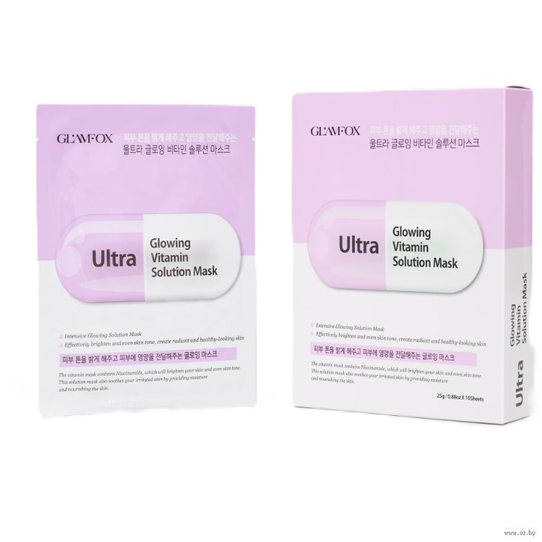 Тканевая маска GLAMFOX Ultra Glowing Vitamin Solution Mask, созданная для мгновенного преображения вашей кожи, придавая ей сияющий и здоровый вид.