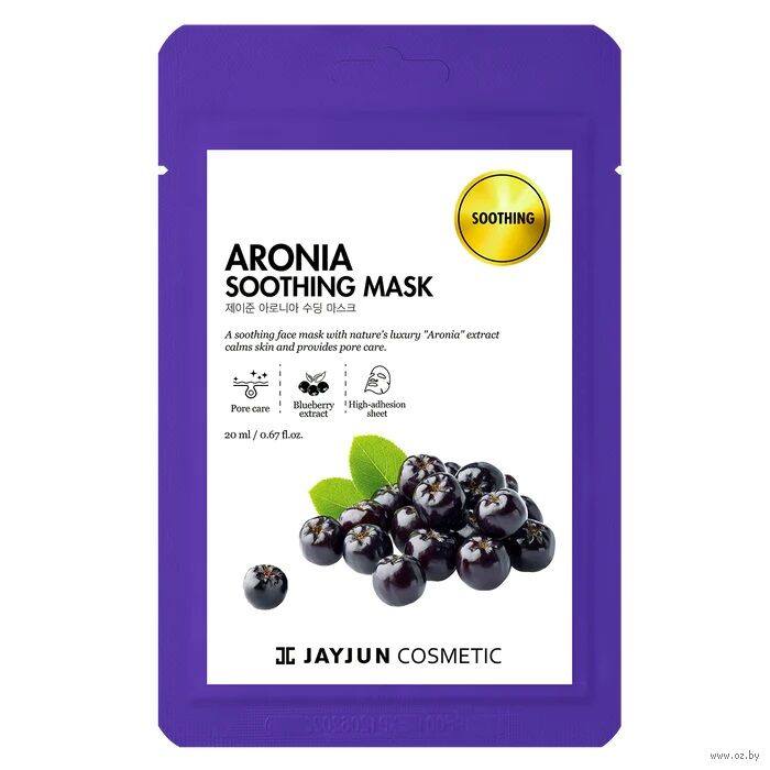 Успокаивающая маска для лица от корейской торговой марки JayJun с экстрактом черноплодной рябины предназначена для любого типа кожи, но идеально подойдет жирной, комбинированной и чувствительной.