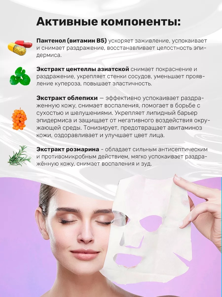 Достаньте из упаковки и плотно приложите к очищенному, увлажнённому лицу. Подождите 10-20 минут и снимите. Дайте впитаться эссенции, мягкими похлопывающими движениями.Состав
