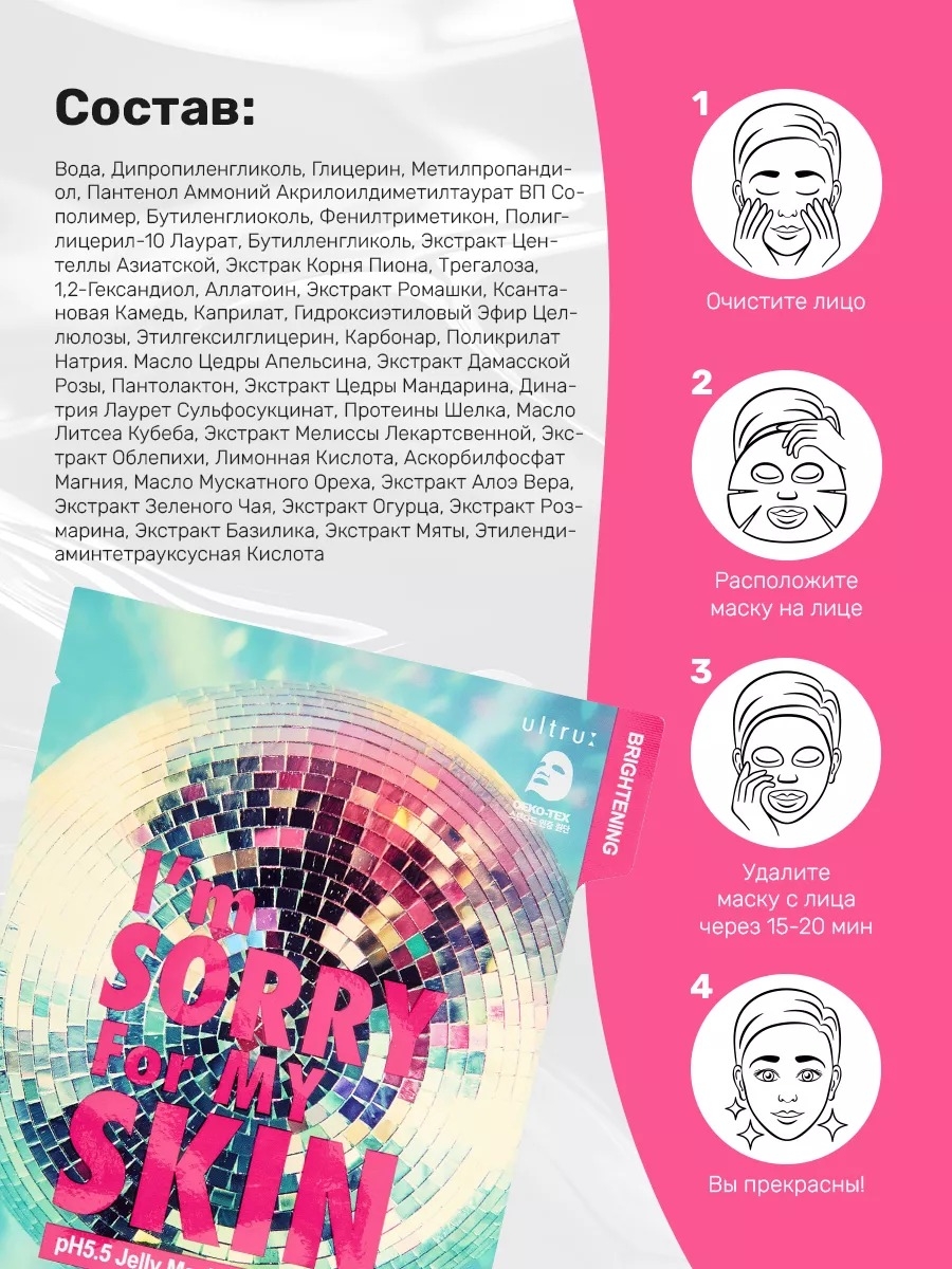Тканевая маска для сияния кожи I'm Sorry for My Skin "pH 5.5 Jelly Mask Brightening" помогает вернуть коже здоровый тон и наполнить сиянием, разглаживает рельеф и улучшает текстуру кожи. Обеспечивает эффект лифтинга, превосходно увлажняет, успокаивает покраснения.