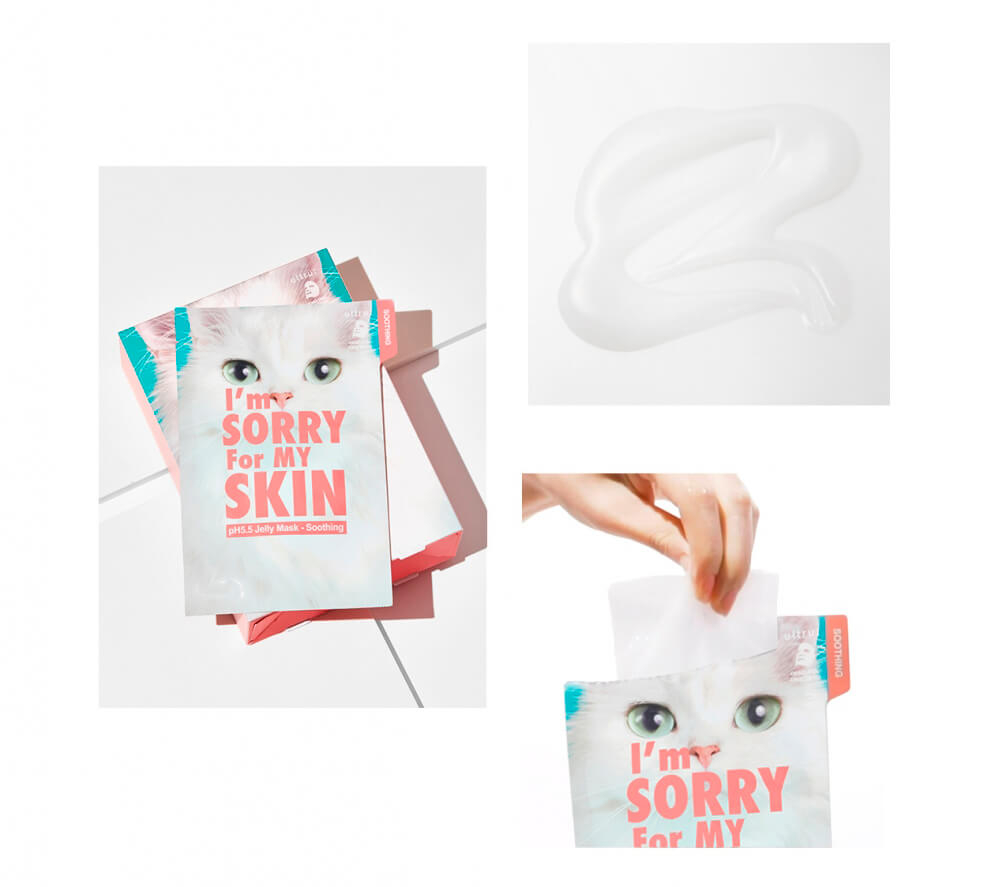 Тканевая маска с центеллой I'm Sorry For My Skin "pH5.5 Jelly Mask-Soothing (Cat)" быстро успокаивает кожу, снимает раздражения и покраснения, предотвращает появление воспалений.