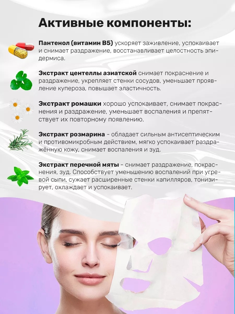 | Активные компоненты | Аллантоин, пантенол (витамин в5), растительные экстракты, центелла азиатская, экстракт зеленого чая |