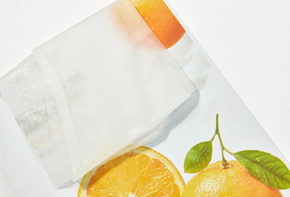 Маска содержит экстракт экстракт сладкого апельсина, минеральную воду, витамины и жирные кислоты. Тканевая маска пропитана эссенцией на основе апельсинового масла, которое бодрит, тонизирует и освежает.