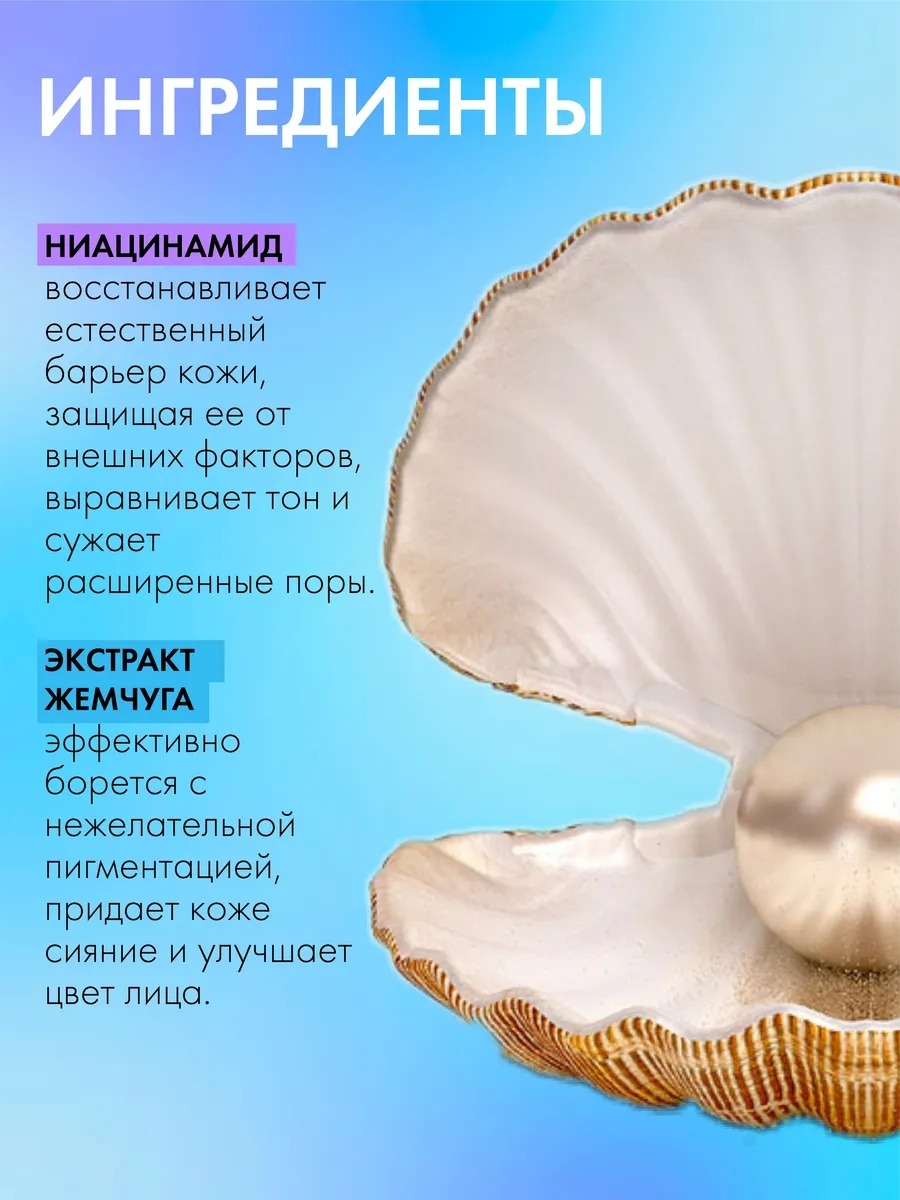 Тканевая маска с ниацинамидом и экстрактом жемчуга интенсивно увлажняет кожу, освежает цвет лица, делая его красивым и здоровым.