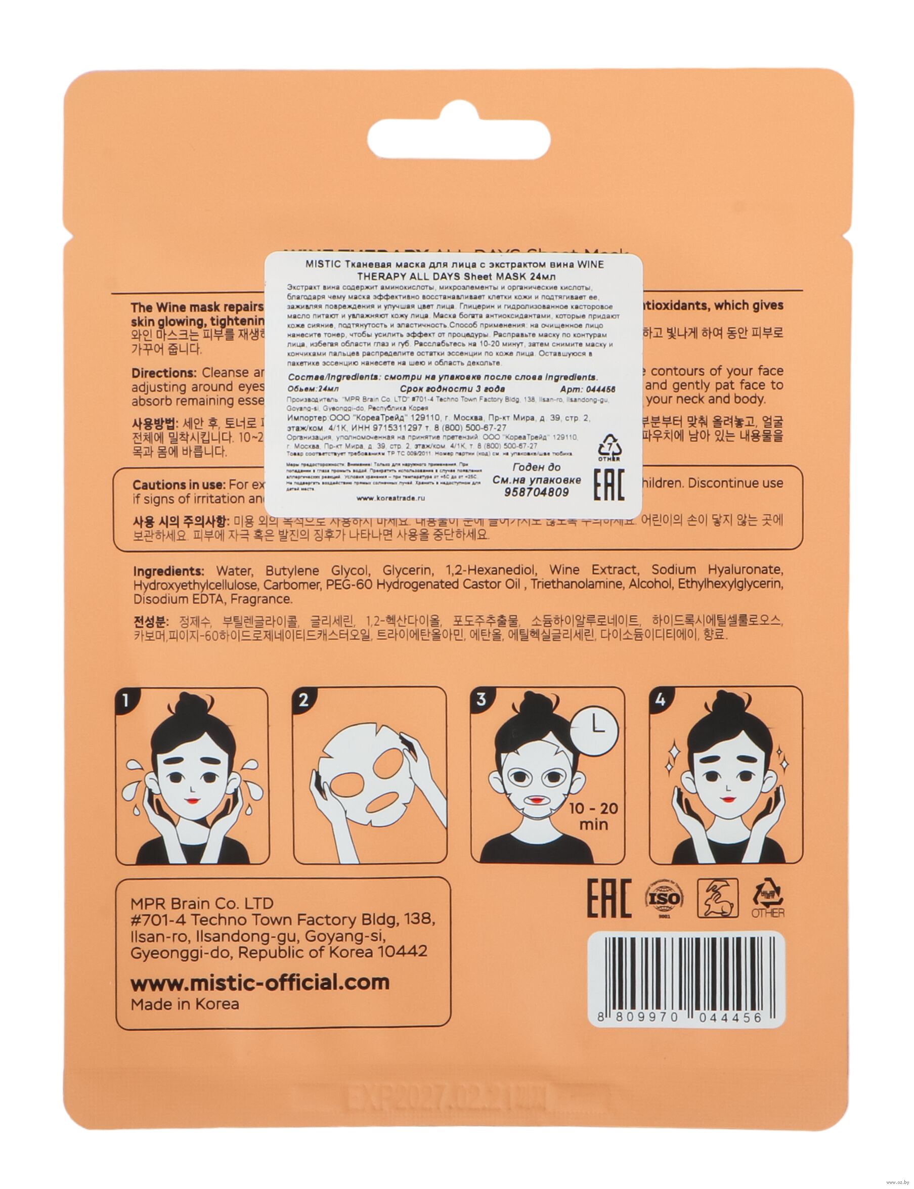 | Название в оригинале | Mistic Wine Therapy All Days Sheet Mask |