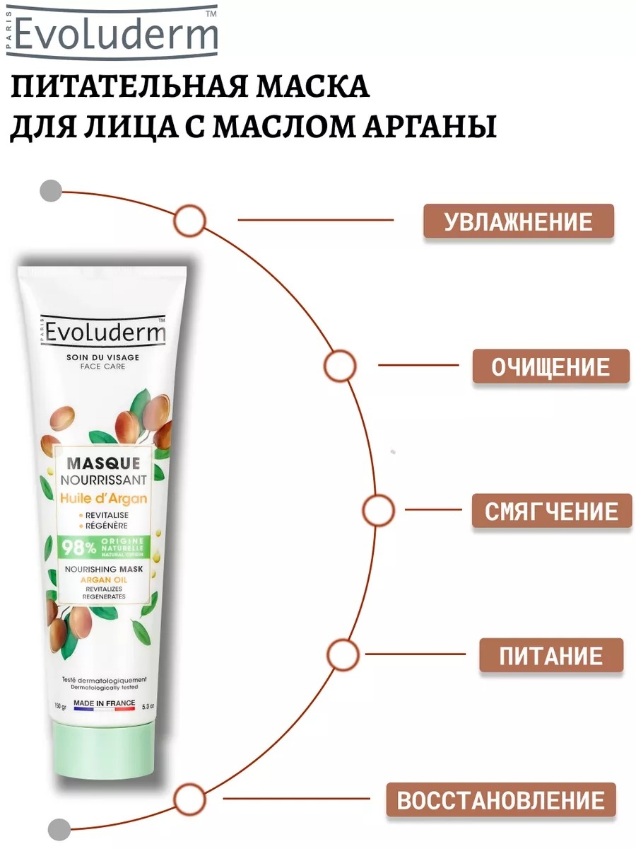 Питательная маска с аргановым маслом, на 98% состоящая из натуральных и веганских продуктов, увлажняет и улучшает цвет лица. Её тающая формула с тонким ароматом успокаивает и обеспечивает мгновенное ощущение комфорта. Настоящий эликсир красоты, аргановое масло в сочетании с глицерином предотвращает сухость кожи и защищает её от внешних воздействий. Этот увлажняющий коктейль позволяет коже перезарядиться и восстановить свою первоначальную мягкость. Результат: кожа напитана и восстановлена.