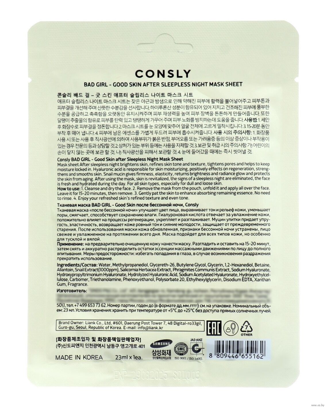 Тканевая маска "После бессонной ночи" улучшает цвет лица, выравнивает тон и рельеф кожи, уменьшает поры, смягчает, способствует сохранению влаги.