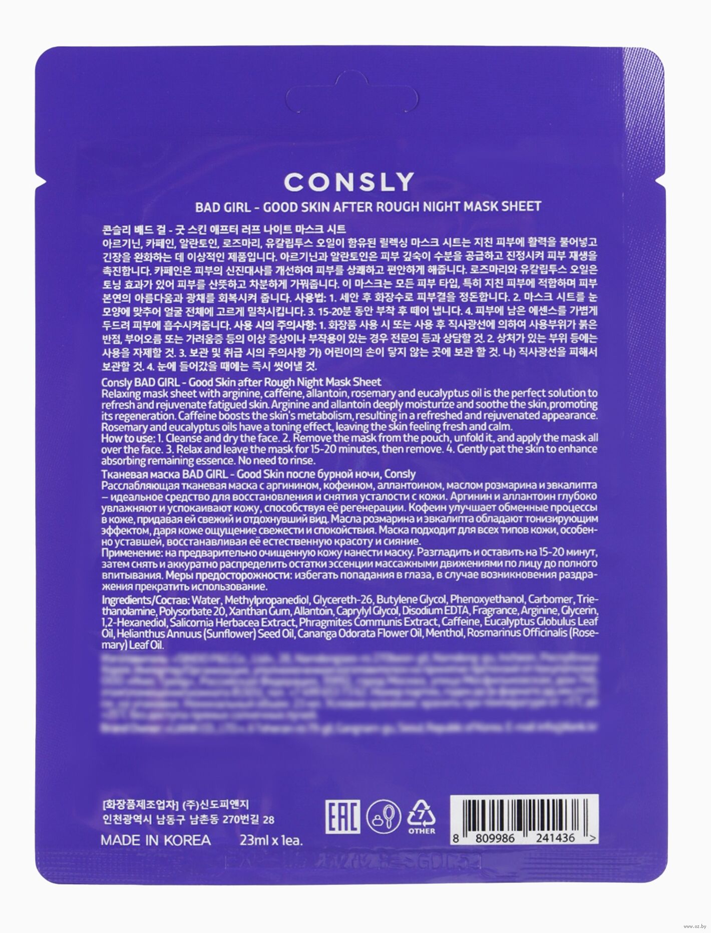Тканевая маска "Восстановление и снятие усталости с кожи" предназначена для интенсивного ухода за уставшей, напряжённой и потерявшей тонус кожей. Это средство помогает быстро снять признаки усталости, восстановить естественное сияние и вернуть коже ощущение комфорта после стресса, тяжёлого дня или длительного воздействия внешних факторов. Маска входит в серию Bad Girl Good Skin, созданную для решения конкретных проблем кожи, связанных с переутомлением и снижением жизненной энергии.