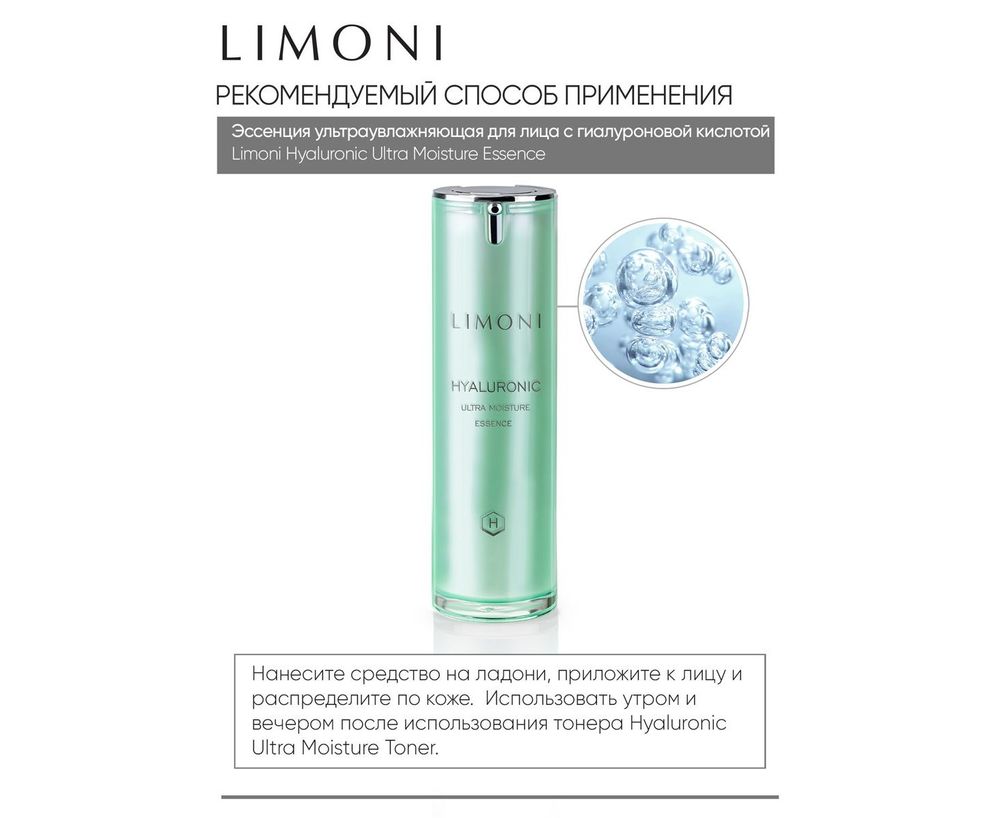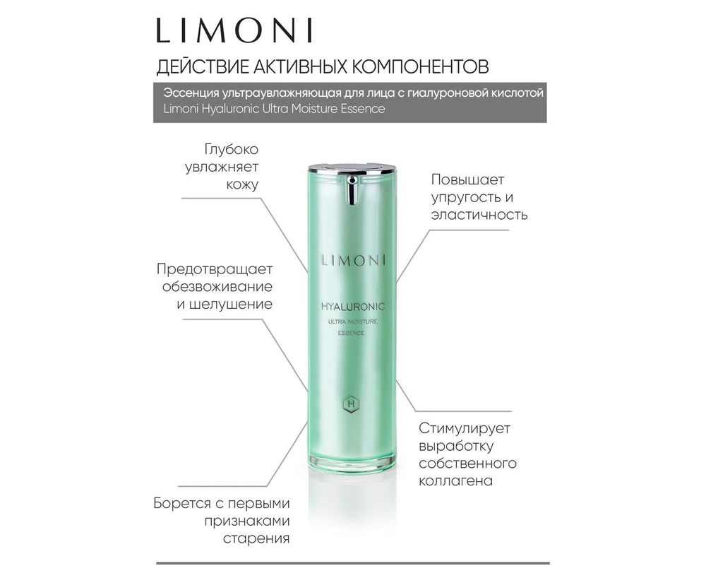 Инновационная формула эссенции направлена на глубокое увлажнение кожи (за счёт высокой концентрации гиалуроновой кислоты) и повышение упругости и эластичности. В состав эссенции также входит морской коллаген, обеспечивающий антивозрастное действие и стимулирующий выработку собственного коллагена в коже. Эссенция работает в двух направлениях: увлажняет глубокие слои кожи и создаёт защитный поверхностный слой. Предотвращает обезвоживание и шелушение.