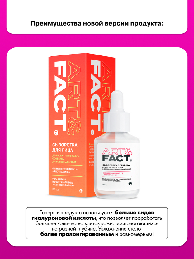 Сыворотка для лица с низкомолекулярной гиалуроновой кислотой, провитамином B5 и кроссполимером гиалуроновой кислоты.