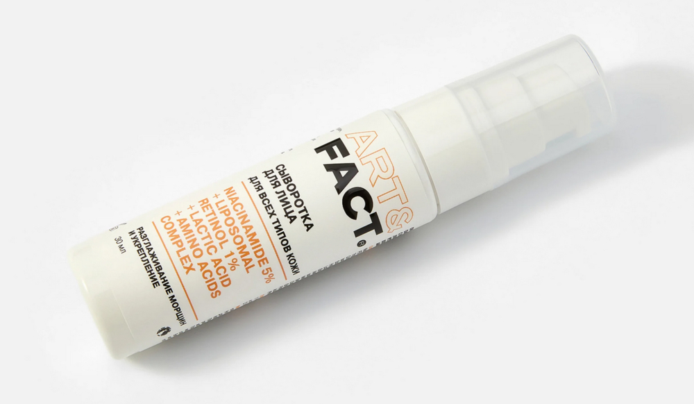 Омолаживающая сыворотка для лица с ниацинамидом 5%, липосомальным ретинолом 1%, молочной кислотой и комплексом аминокислот.