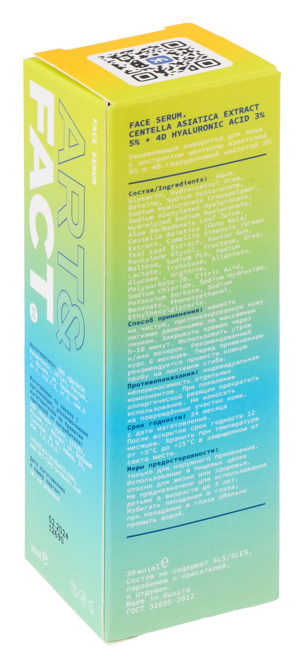 | Активные компоненты | Гиалуроновая кислота, центелла азиатская |