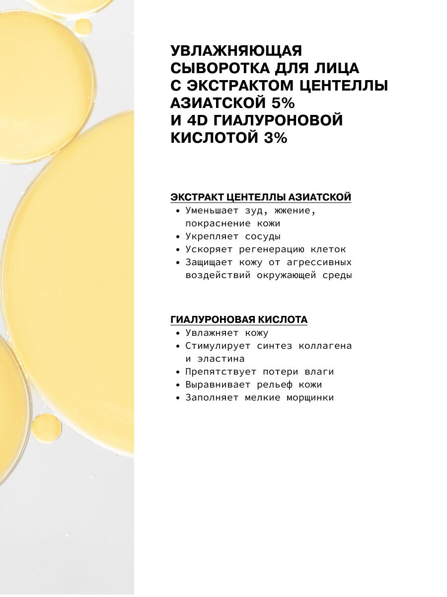 Сыворотка для лица "Увлажняющая. Centella Asiatica 5% + 4D Hyaluron. Acid 3%" (30 мл)