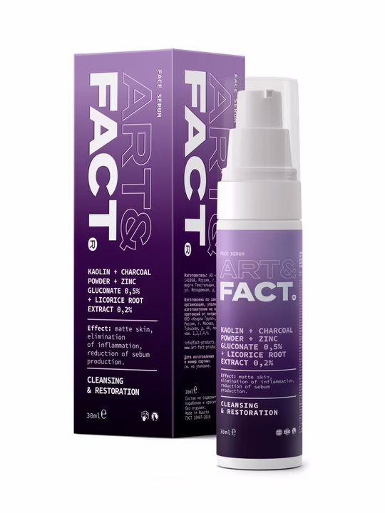 Сыворотка для глубокого очищения пор с каолином и порошком древесного угля, глюконатом цинка и экстрактом корня солодки 0,2%.