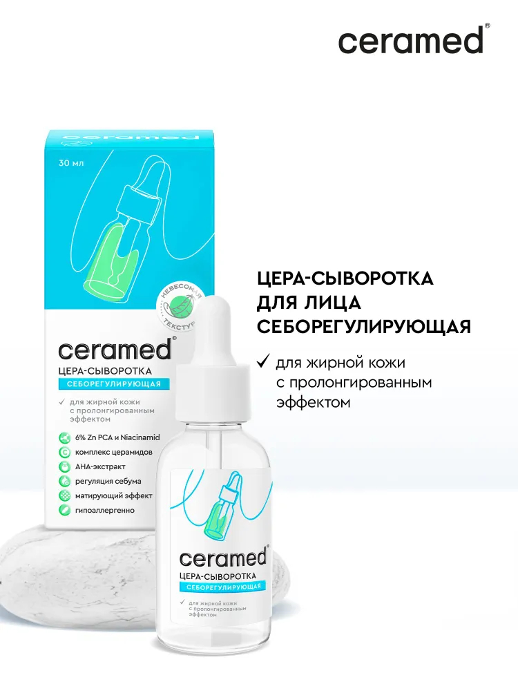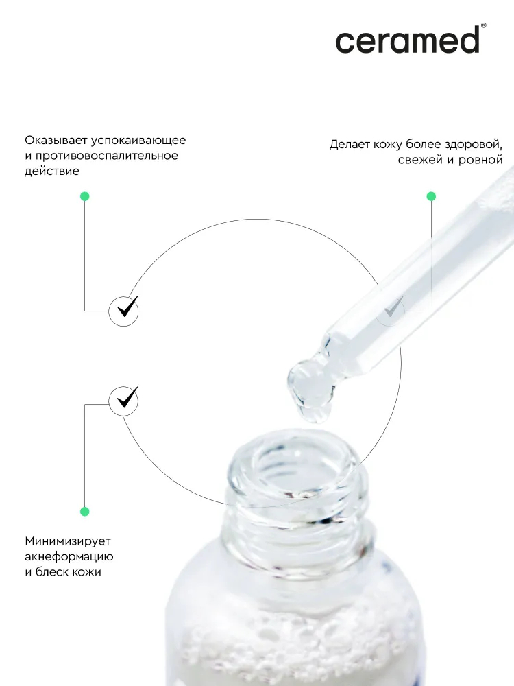 Формула сыворотки Ceramed способствует устранению воспаления и покраснений на лице. Снимает чувствительность дермы, дарит чувство комфорта на протяжении всего дня.