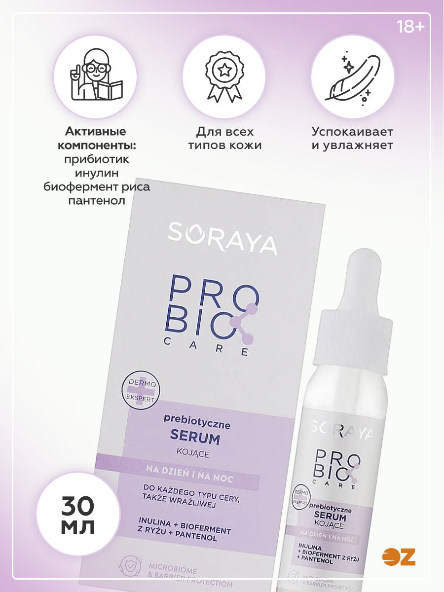 Пребиотическая успокаивающая сыворотка восстанавливает баланс кожи, оптимальное увлажнение, поддерживает ее микробиом и гидролипидный барьер.