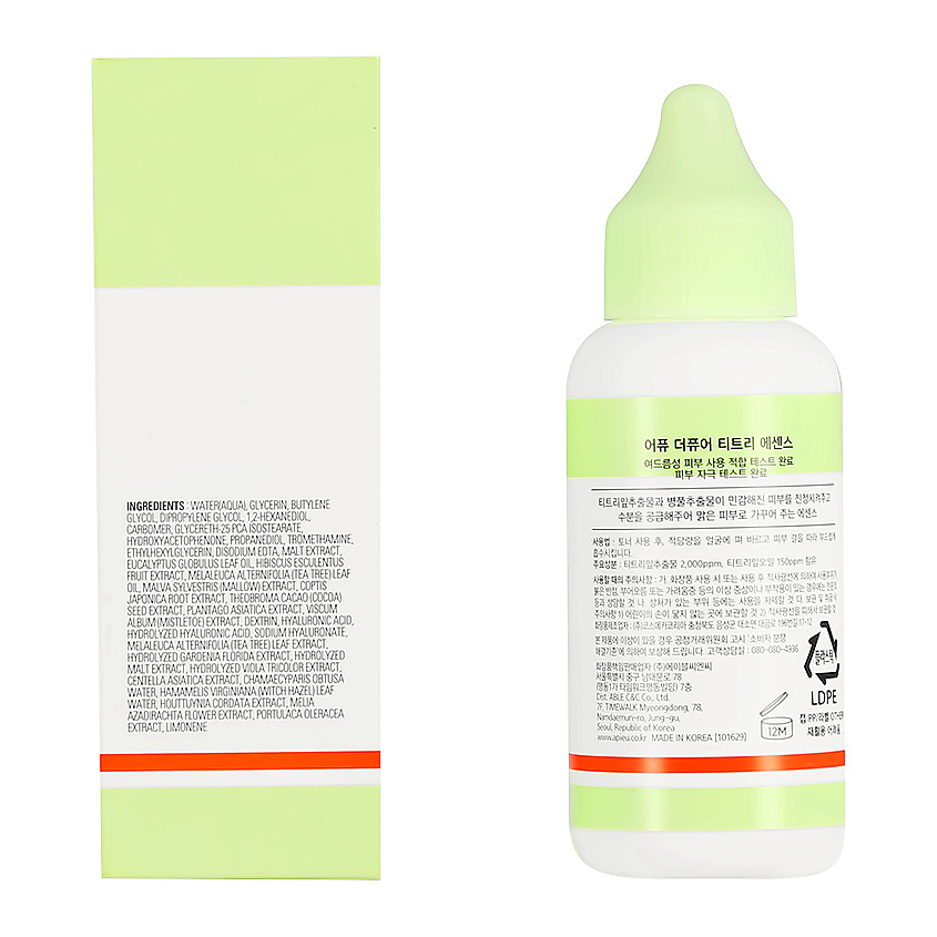Water, Glycerin, Butylene Glycol, Dipropylene Glycol,1,2-Hexanediol, Carbomer, Glycereth-25 PCA Isostearate, Hydroxyacetophenone, Propanediol, Tromethamine, Ethylhexylglycerin, Disodium EDTA, Malt Extract, Eucalyptus Globulus Leaf Oil, Hibiscus Esculentus Fruit Extract, Melaleuca Alternifolia (Tea Tree) Leaf Oil, Malva Sylvestris (Mallow) Extract, Coptis Japonica Root Extract, Theobroma Cacao (Cocoa) Seed Extract, Plantago Asiatica Extract, Viscum Album (Mistletoe) Extract, Dextrin, Hyaluronic Acid, Hydrolyzed Hyaluronic Acid, Sodium Hyaluronate, Melaleuca Alternifolia (Tea Tree) Leaf Extract, Hydrolyzed Gardenia Florida Extract, Hydrolyzed Malt Extract, Hydrolyzed Viola Tricolor Extract, Centella Asiatica Extract, Chamaecyparis Obtusa Water, Hamamelis Virginiana (Witch Hazel) Leaf Water, Houttuynia Cordata Extract, Melia Azadirachta Flower Extract, Portulaca Oleracea Extract.