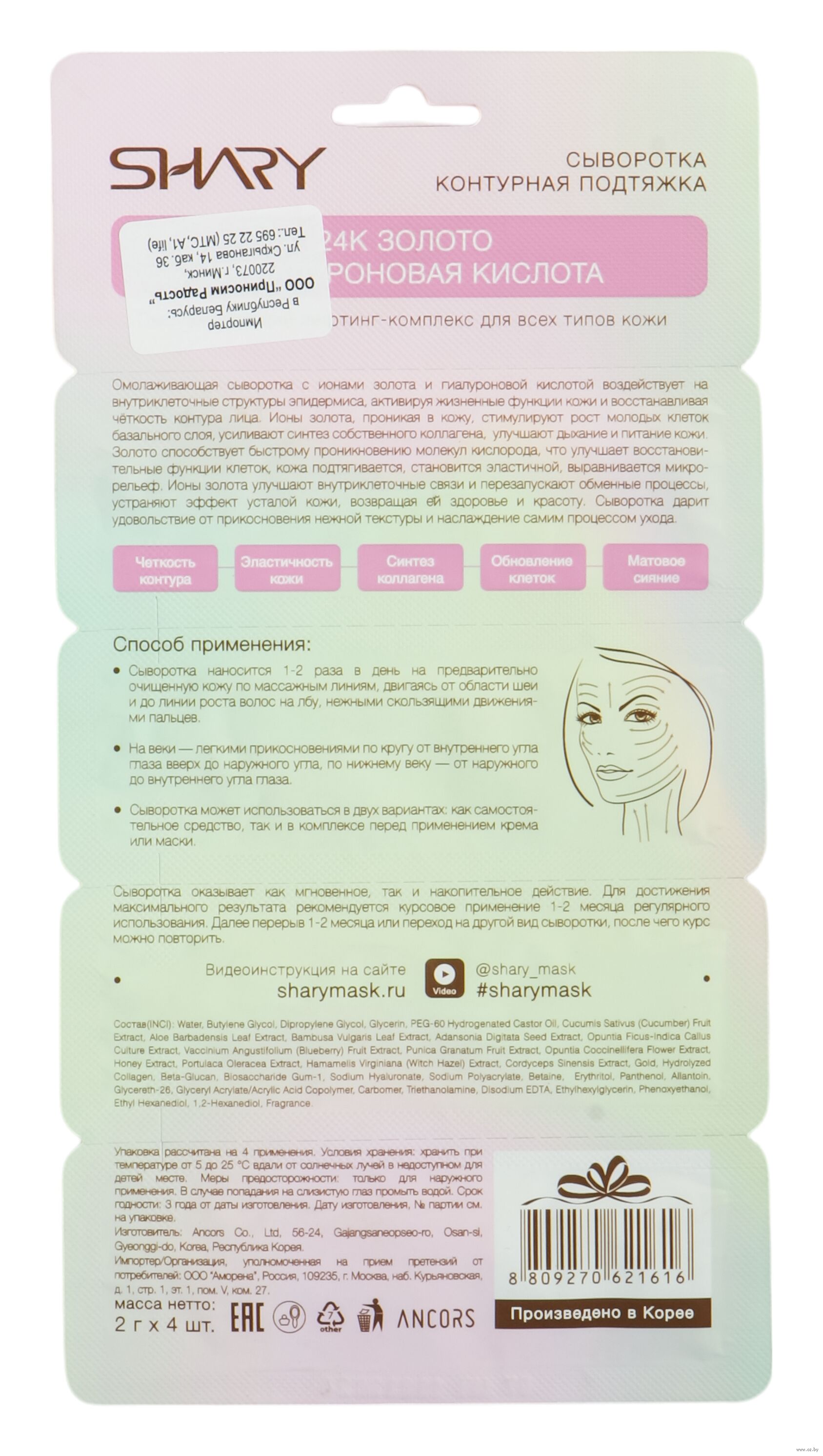 Омолаживающая сыворотка с ионами золота и гиалуроновой кислотой воздействует на внутриклеточные структуры эпидермиса, активируя жизненные функции кожи и восстанавливая чёткость контура лица. Ионы золота, проникая в кожу, стимулируют рост молодых клеток базального слоя, усиливают синтез собственного коллагена, улучшают дыхание и питание кожи. Золото способствует быстрому проникновению молекул кислорода, что улучшает восстановительные функции клеток, кожа подтягивается, становится эластичной, выравнивается микрорельеф. Ионы золота улучшают внутриклеточные связи и перезапускают обменные процессы, устраняют эффект усталой кожи, возвращая ей здоровье и красоту. Сыворотка дарит удовольствие от прикосновения нежной текстуры и наслаждение самим процессом ухода.