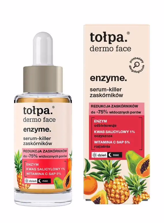 Кератолин – фермент, который очищает поры, отшелушивая омертвевшую кожу, которая их закупоривает. Витамин C 5% – стабильная форма SAP (аскорбилфосфат натрия) – укрепляет, обновляет кожу, осветляет окисленный кожный жир. салициловая кислота 1% очищает поры от загрязнений.