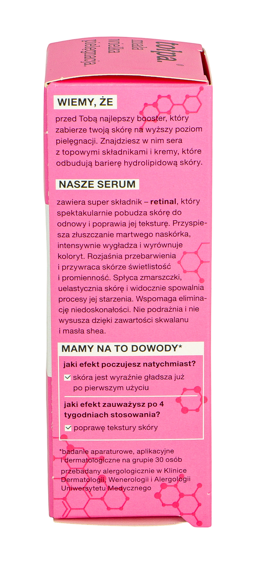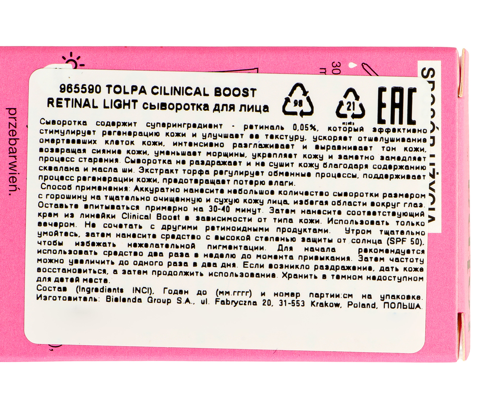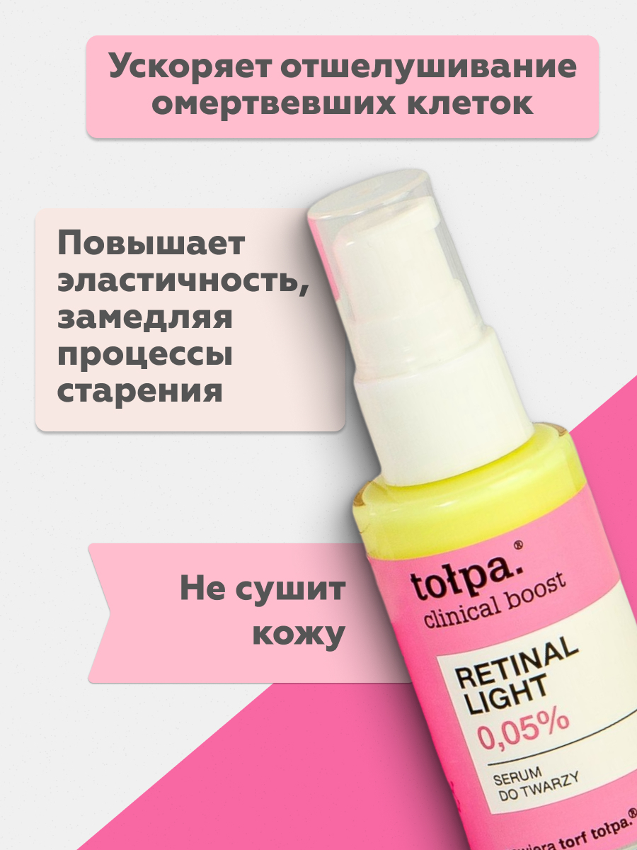 Содержит супер ингредиент – ретиналь, который эффектно стимулирует кожу к обновлению и улучшает ее текстуру.