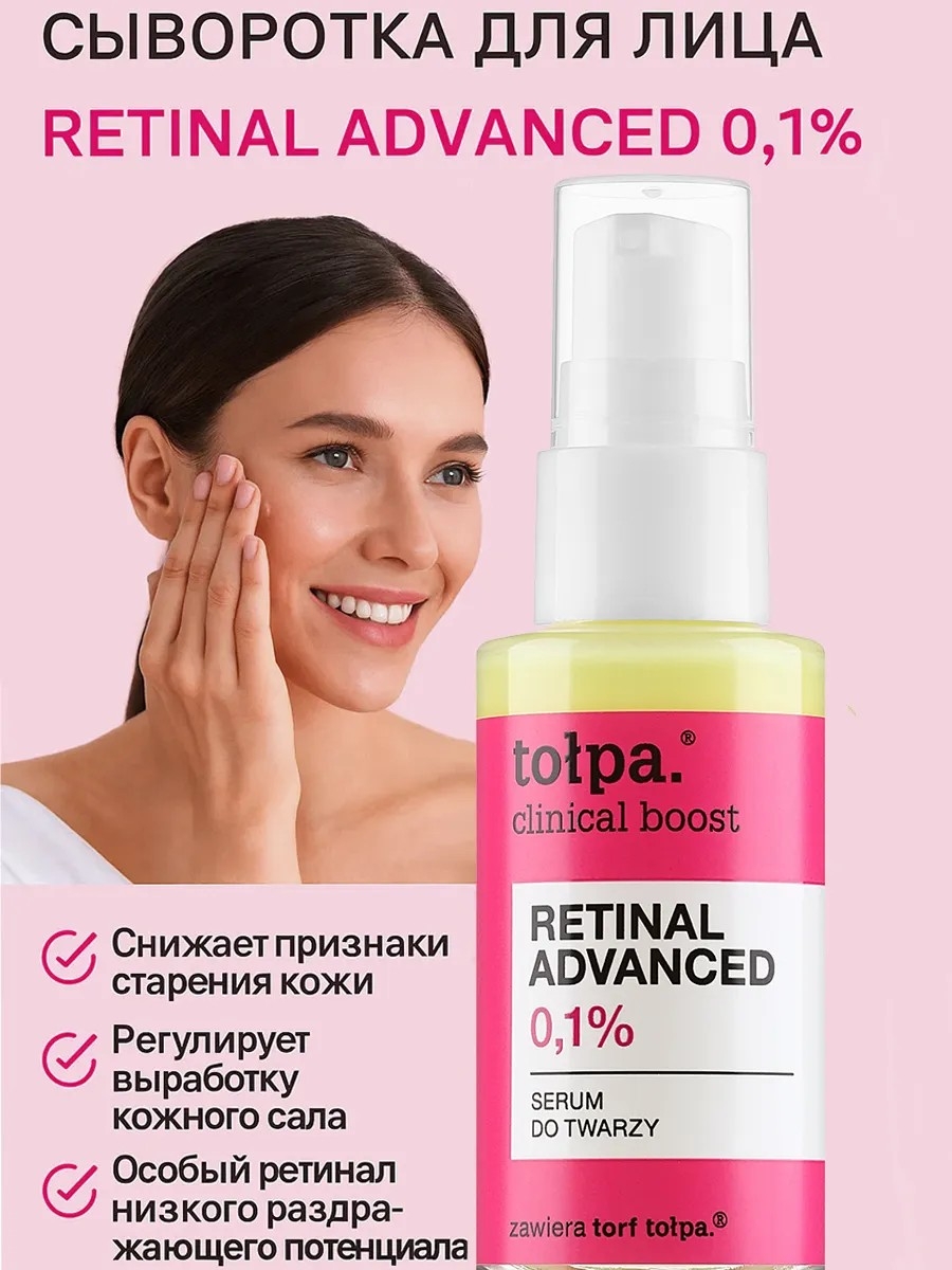Содержит супер ингредиент – ретиналь, который эффектно стимулирует кожу к обновлению и улучшает ее текстуру.