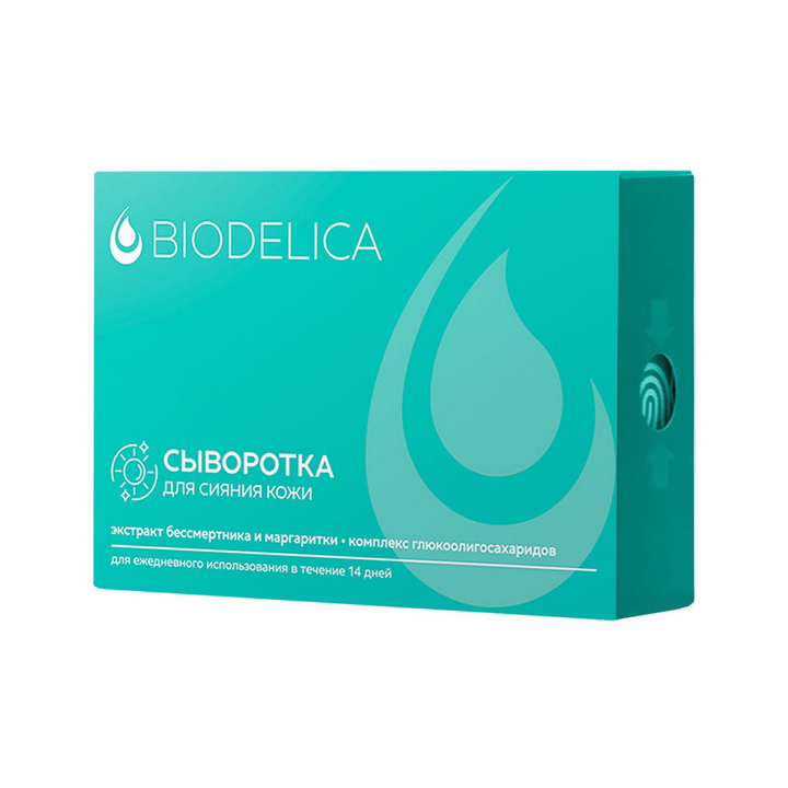 Для сияния вашей кожи лица BIODELICA разработала уникальный продукт широкого спектра действия. Это Сыворотка для лица с экстрактом бессмертника и маргаритки, которая придает коже здоровое сияние и цвет благодаря активации основных энзимов, препятствующих синтезу меланина.