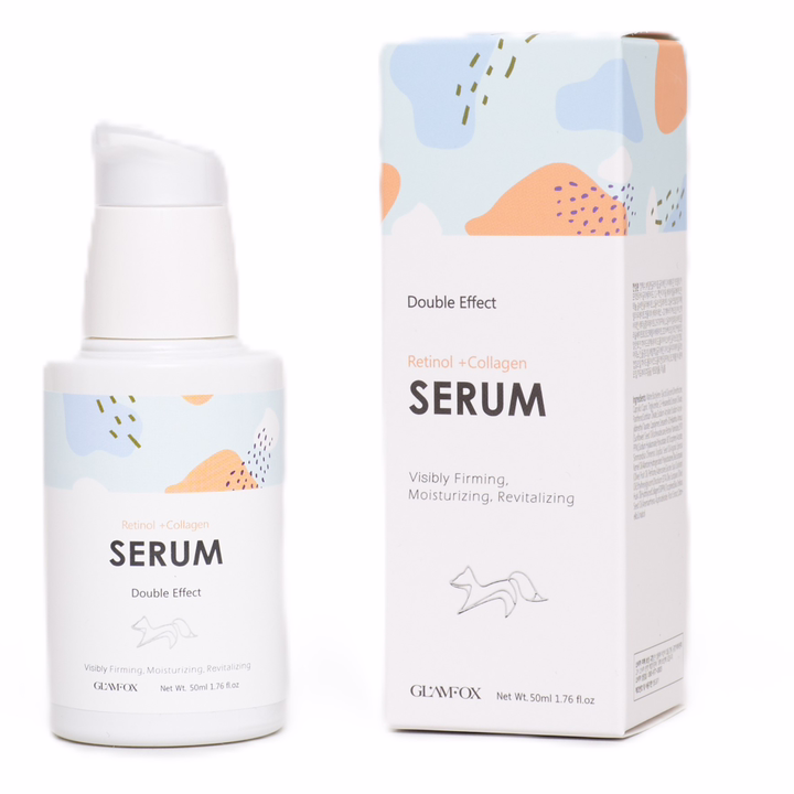 Увлажняющая и укрепляющая сыворотка GLAMFOX Double Effect Retinol Collagen Serum двойного действия, разработанная для борьбы с признаками старения и поддержания молодости кожи.