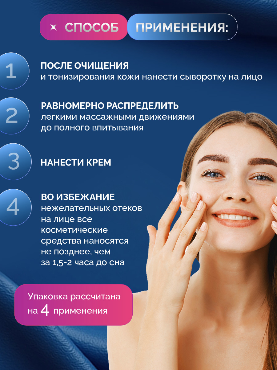 После очищения и тонизирования кожи нанести необходимое количество сыворотки на лицо в качестве базового средства перед использованием крема. Равномерно распределить легкими массажными движениями до полного впитывания. Сыворотку со спикулами 3000 ppm рекомендуется использовать не чаще 1 раза в 3 дня. Во время применения допустимо легкое покалывание - это естественная реакция кожи на воздействие спикул. Во избежание нежелательных отеков на лице все косметические средства наносятся не позднее чем за 1,5-2 часа до сна. Упаковка рассчитана на 4 применения. Подходит для всех типов кожи.Состав