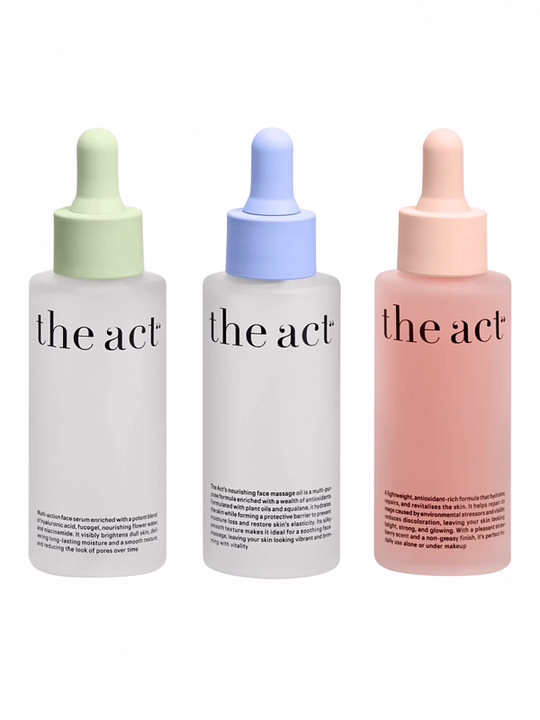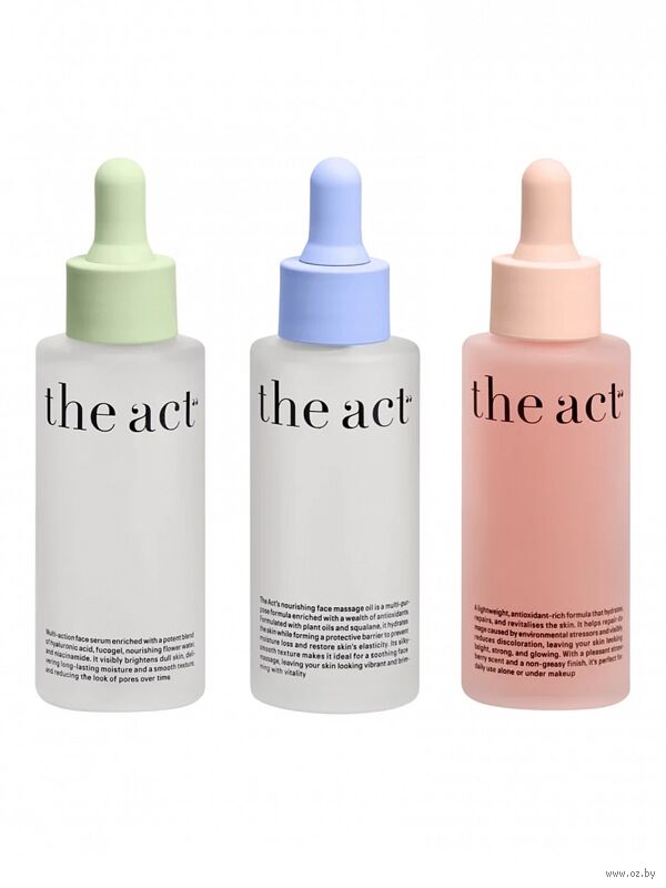 Набор для сияния, увлажнения и упругости кожи. Сыворотка для сияния с аминокислотами и экстрактами фруктов выравнивает тон и восстанавливает кожу. Увлажняющая сыворотка с тремя видами гиалуроновой кислоты насыщает влагой и укрепляет защитный барьер. Масло поддерживает упругость и создаёт плавное скольжение во время массажа лица. Результат – свежая, мягкая и сияющая кожа каждый день.