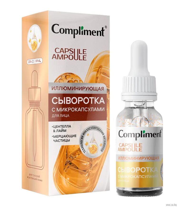 Сыворотка для лица с микрокапсулами "Иллюминирующая" – ваша ежедневная доза витаминов для кожи! Технология инкапсулированных витаминов позволяет быстро и эффективно бороться с тусклым и уставшим видом, а за счет дополнительно входящих иллюминирующих капсул сыворотка визуально корректирует видимость морщин и неровности рельефа кожи, создает эффект здорового подсвечивания изнутри! Благодаря комбинации экстрактов центеллы и лайма, лактобионовой кислоты и микрокапсул с витаминами сыворотка ухаживает и улучшает качество кожи, придает ей отдохнувший вид. Регулярное использование сыворотки насыщает кожу влагой, дарит ей обновленный и ухоженный вид.