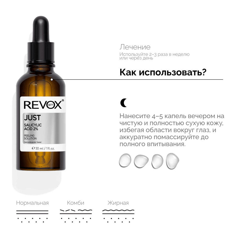 Салициловая кислота – это бета-гидроксикислота (BHA), получаемая из натуральных источников, таких как кора ивы, листья грушанки или коры берёзы. Салициловая кислота – эффективное отшелушивающее средство, способное проникать в жирную кожу и закупоренные поры для глубокого очищения. Кислота удаляет омертвевшие клетки кожи и излишки кожного сала, благодаря чему кожа становится более свежей и ровной.