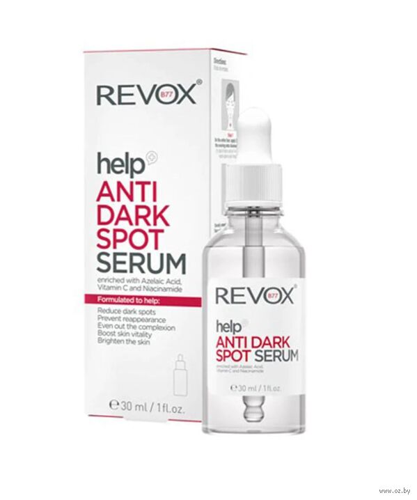 Пигментация – враг идеального тона. Она может произойти с вами в результате воздействия солнечных лучей, возрастных изменений в организме, а также, что чаще всего, прийти в роли постакне. Все эти случаи объединяет одно – метод борьбы с ними. Он заключается в использовании Help Anti Dark Spot Serum от бренда Revox.