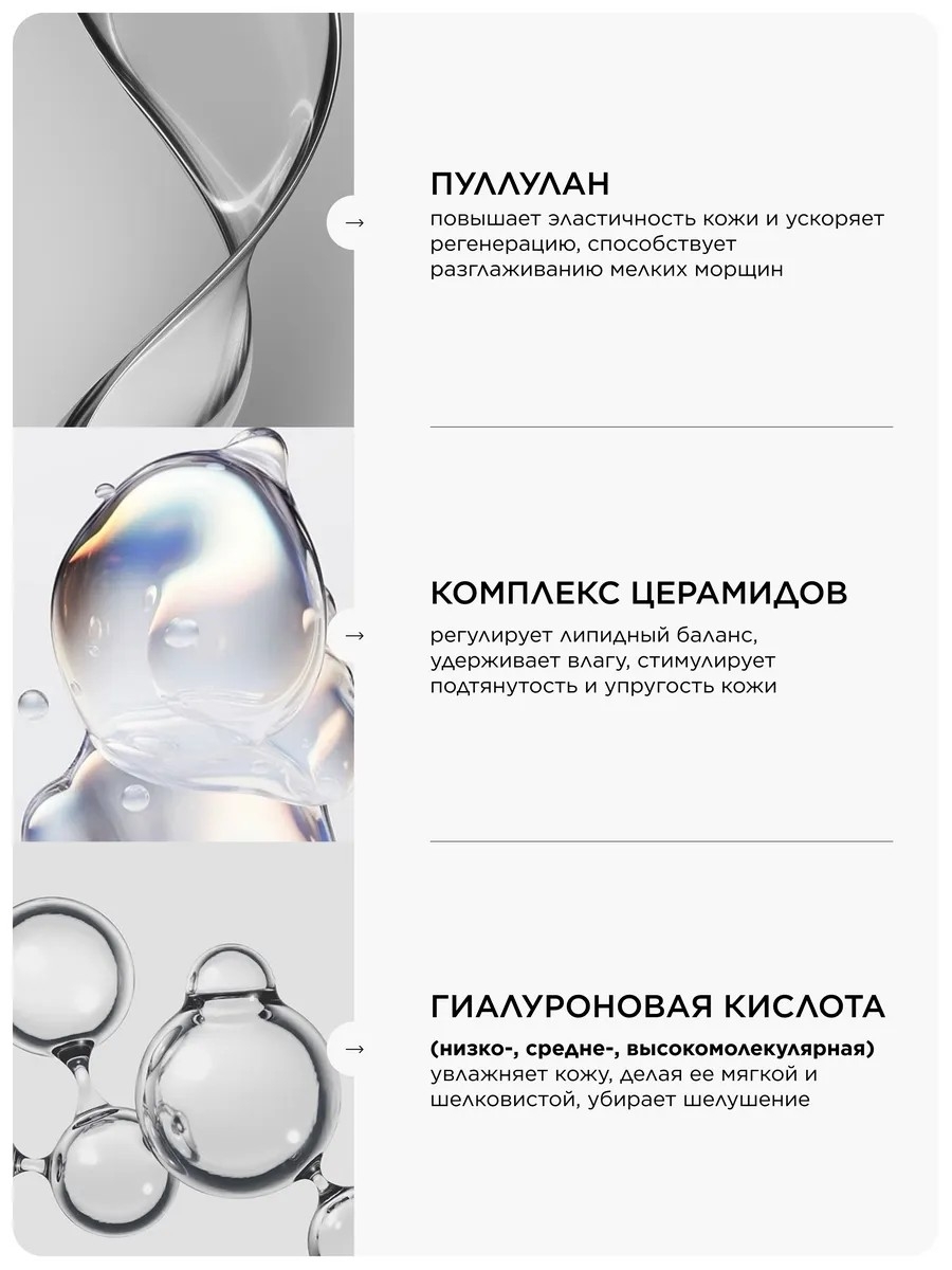 Aqua, Glycerin, Caprylic Capric Triglyceride, Cetyl Palmitate, Ceteareth-12, Ceteareth-20, Cetearyl Alcohol, Glyceryl Stearate, Squalane, Glucose, Niacinamide, Ceramide 1, Ceramide 2, Ceramide 3, Ceramide 6 II, Butylene Glycol, Hydrogenated Lecithin, Caprylic/Capric Glycerides Polyglyceryl-10 Esters, Pentylene Glycol, Sorbitol , Sodium Glutamate, Urea, Sodium PCA,Glycine, Lactic Acid, Hydrolyzed Wheat Protein, Dimethicone, Cyclomethicone, Pentylene Glycol, Polyglyceryl-4 Caprate, Sodium Hualuronate, Palmitoyl Hexapeptide-12, Citric Acid, Hyaluronate acid, Panthenol, Carbomer, Parfum, Tocopherol, Phenoxyethanol, Ethylhexylglycerin, Sodium hydroxide, ВНТ.