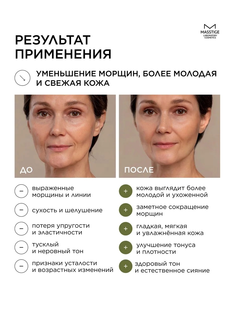| Действие | Антивозрастной уход, восстановление, лифтинг, омолаживающий, питание, против морщин, против пигментации, тонизирующий, увлажнение |
