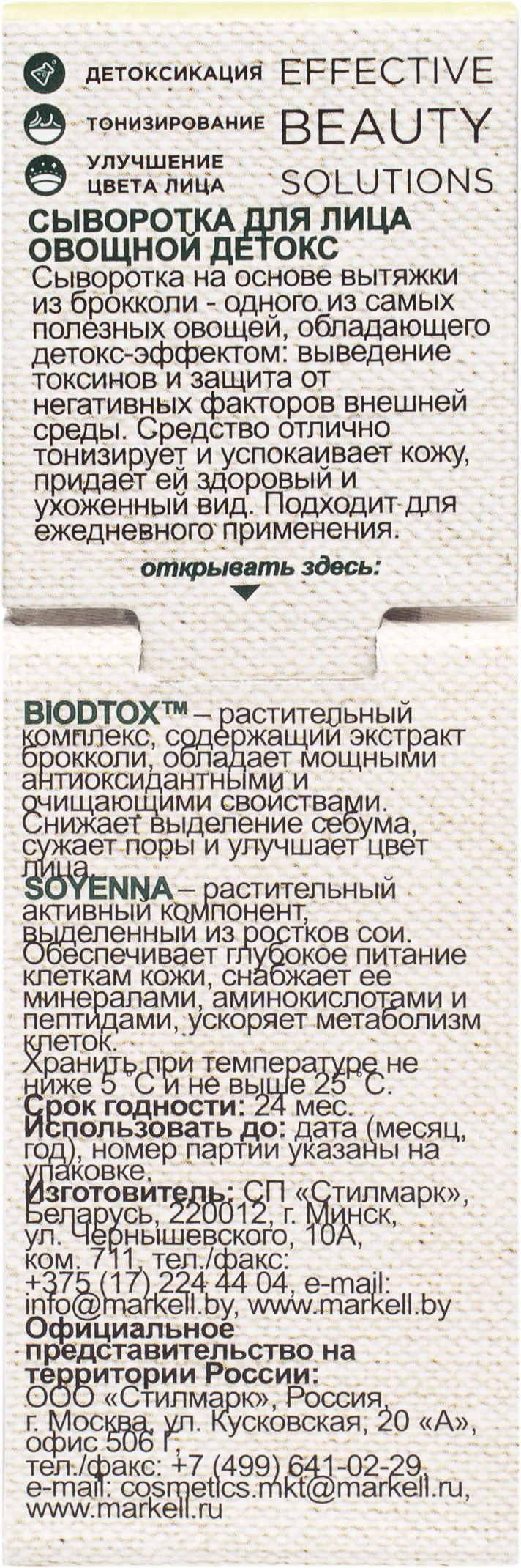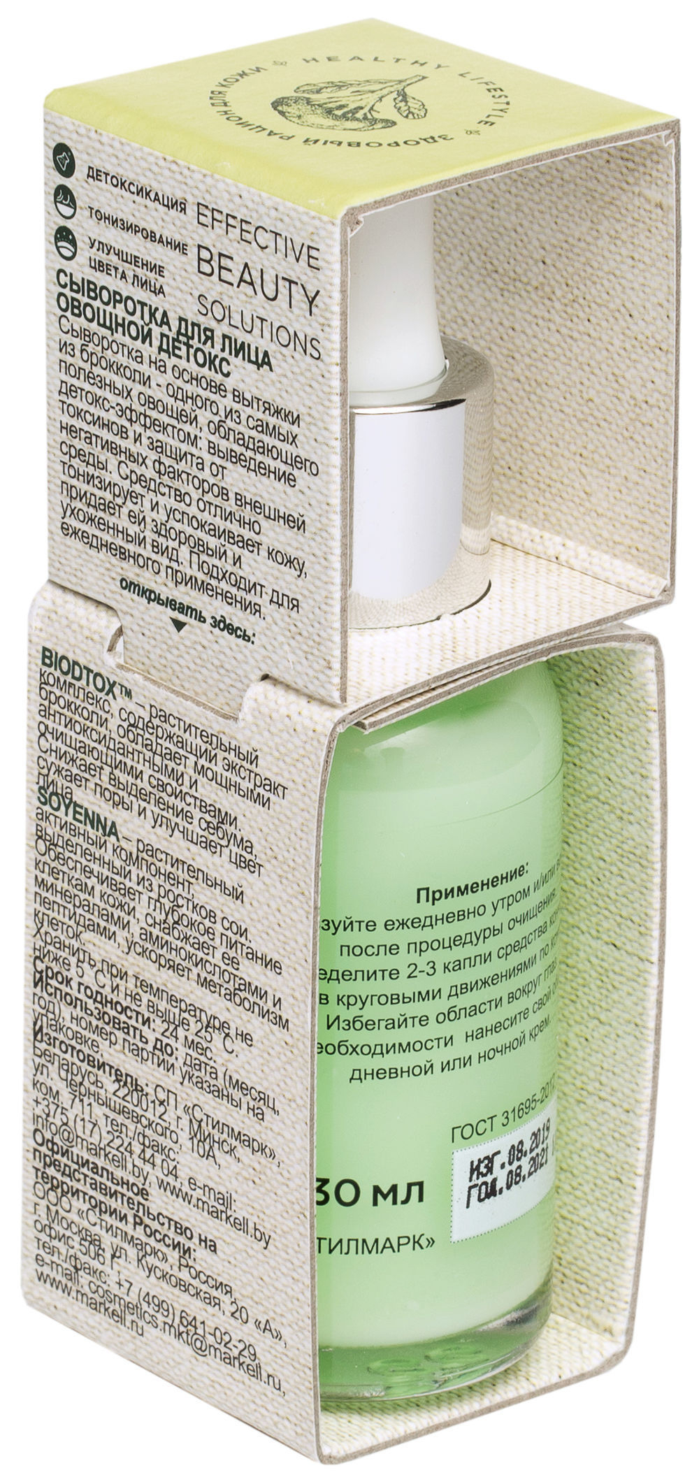 Сыворотка на основе вытяжки из брокколи – одного из самых полезных овощей, обладающего детокс-эффектом: выведение токсинов и защита от негативных факторов внешней среды. Средство отлично тонизирует и успокаивает кожу, придает ей здоровый и ухоженный вид.